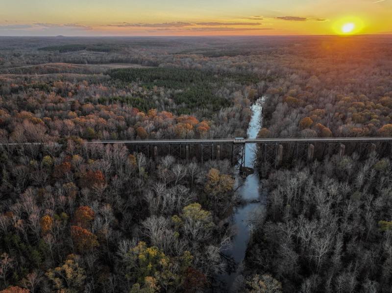 Once you’re on the 125-foot-high bridge, you’ll be privy to majestic views of the surrounding area and Appomattox River below.