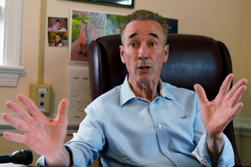 Virginia State Sen. Joe Morrissey gestures during an interview in his office Monday, May. 22, 2023, in Richmond, Va. Morrissey is being challenged in a Democratic primary for a newly redrawn senatorial district by former Delegate Lashrecse Aird. (Steve Helber)