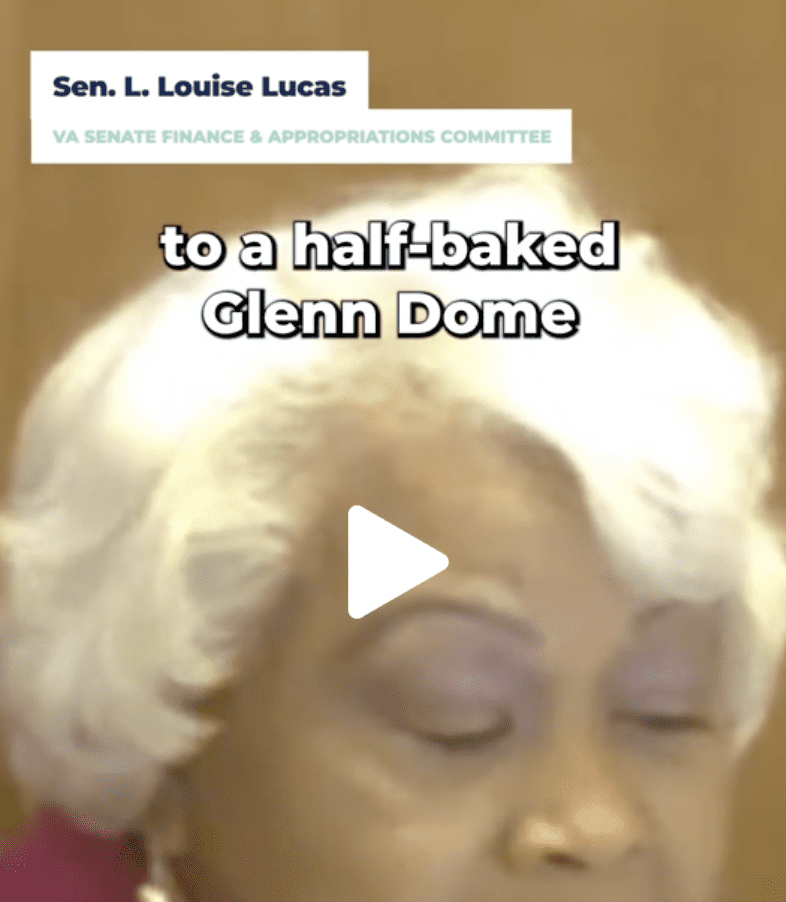 Sen. L. Louise Lucas explained why Alexandria’s sports authority bill to fund the Capitals/Wizards arena was missing from the Senate Finance Committee’s docket. The committee wants to avoid moving forward as they fear the “Glenn Dome” may have severe conflicts for taxpayers in the commonwealth.