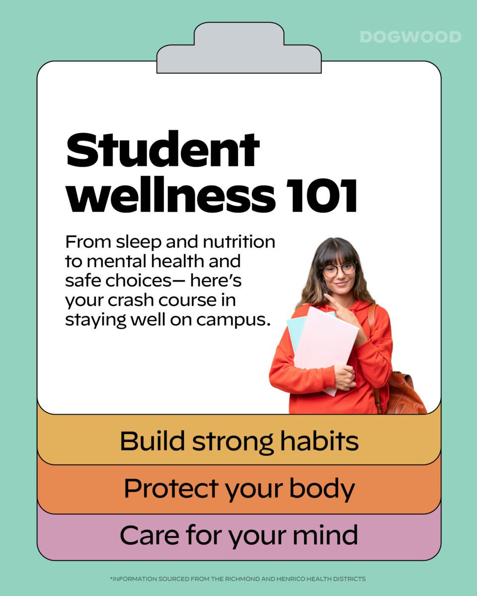 Are you or someone you know heading back to the on-campus grind this month? The Richmond and Henrico Health Districts recently published a great list of student wellness tips you might like to share.