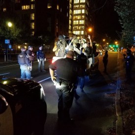 No Violence on Election Night, as ‘Trump Train’ and Protesters Miss Each Other