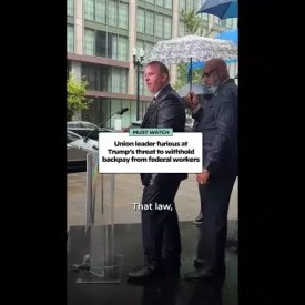 Not even the rain could put out this union leader’s fire. Listen in as he calls out the Trump administration for threatening to withhold back pay for federal workers once the shutdown is eventually over.