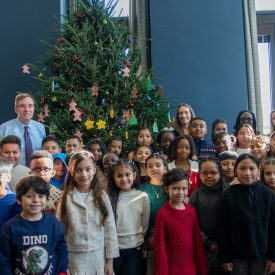 US Sen. Mark Warner’s Capitol Hill office got a festive makeover when elementary students decorated a towering Christmas tree, shared holiday cheer, and pitched their own bills for a brighter future.