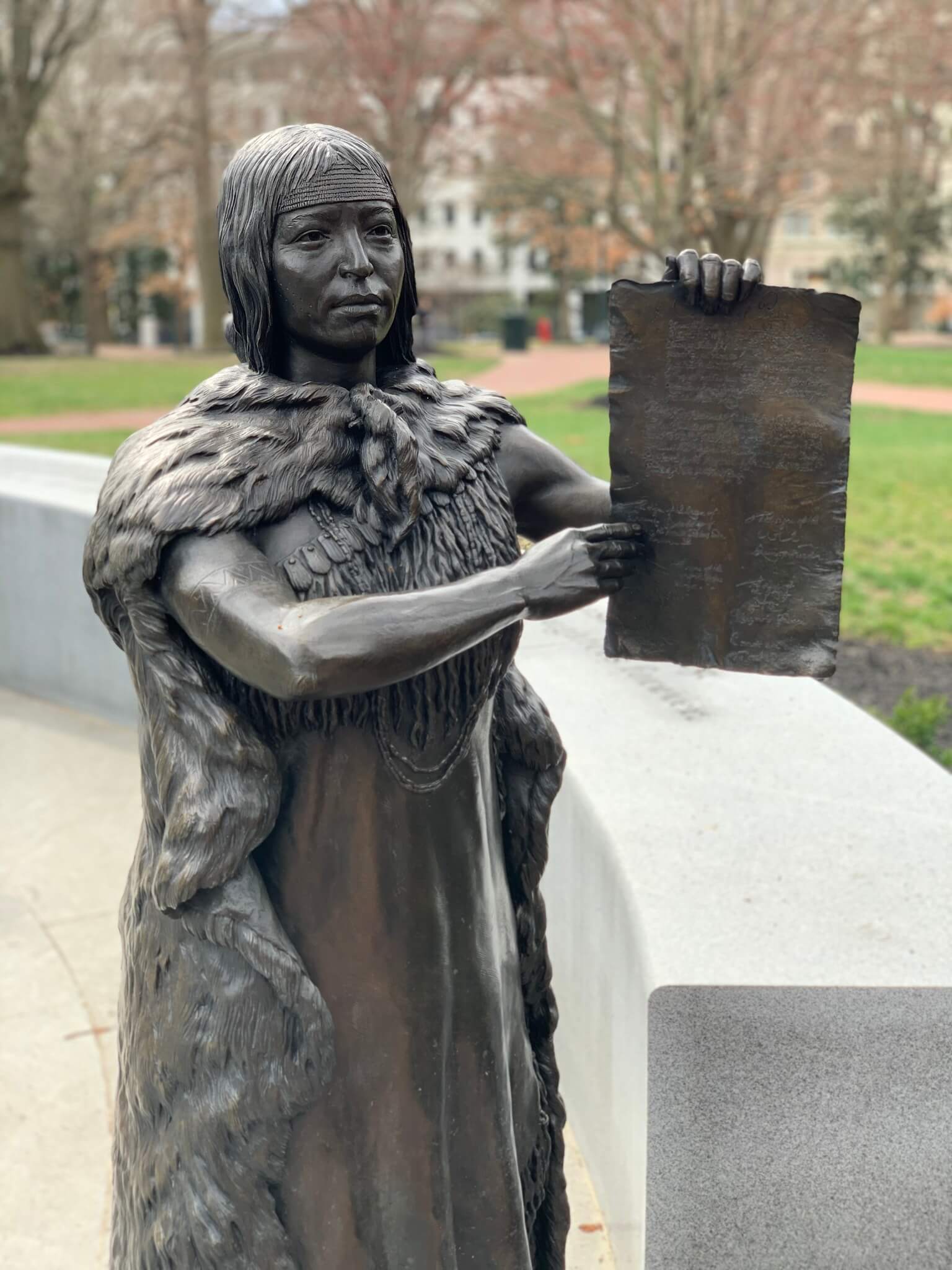 A statue of Cockacoeske stands among other influential Virginia women at the Virginia Women’s Monument in Richmond.