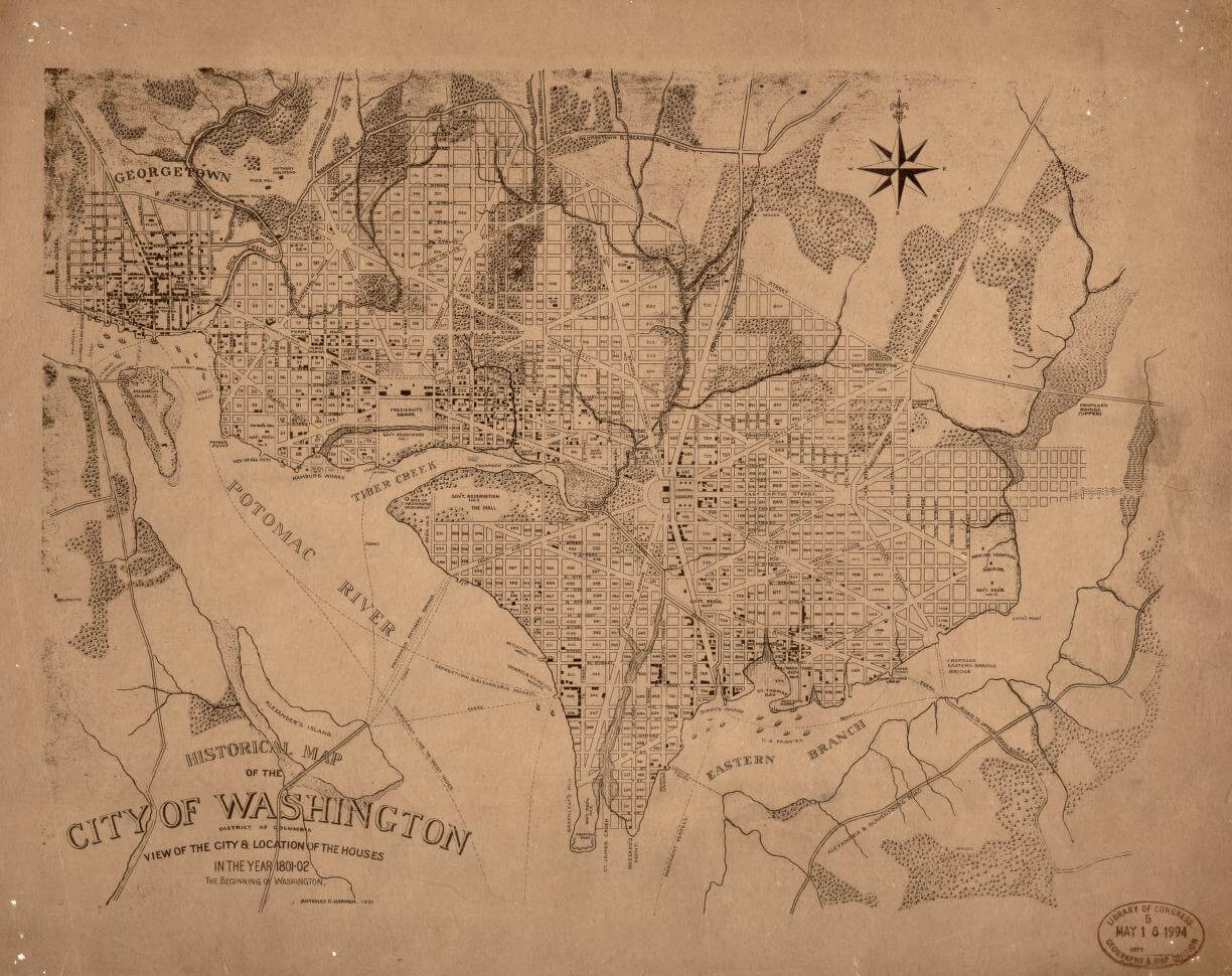 In July of the same year, the Residence Act passed. The compromise between Virginians Thomas Jefferson and James Madison and immigrant Alexander Hamilton granted Washington the power to ultimately choose the exact location of the capital. However, there was one big condition—the new capital city had to be situated along the Potomac River.