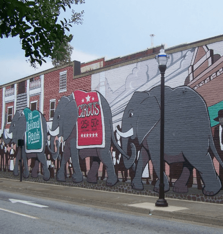 Elephants on Parade was inspired by a photograph taken in Martinsville in 1920 that depicts the arrival of a circus.