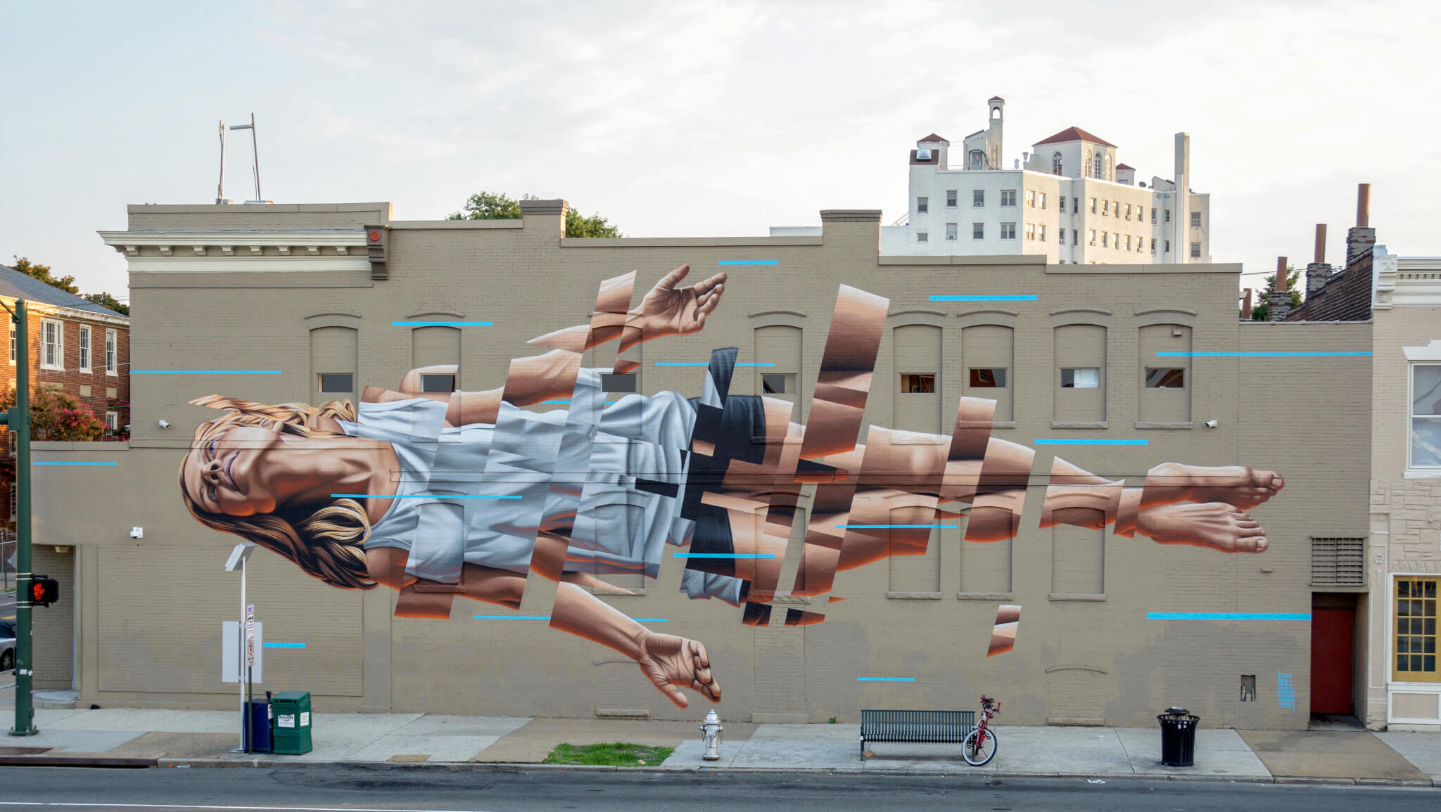 Float was created by James Bullough, an American artist living in Germany, using spray paint over the course of a week in 2015 as part of the Richmond Mural Project.