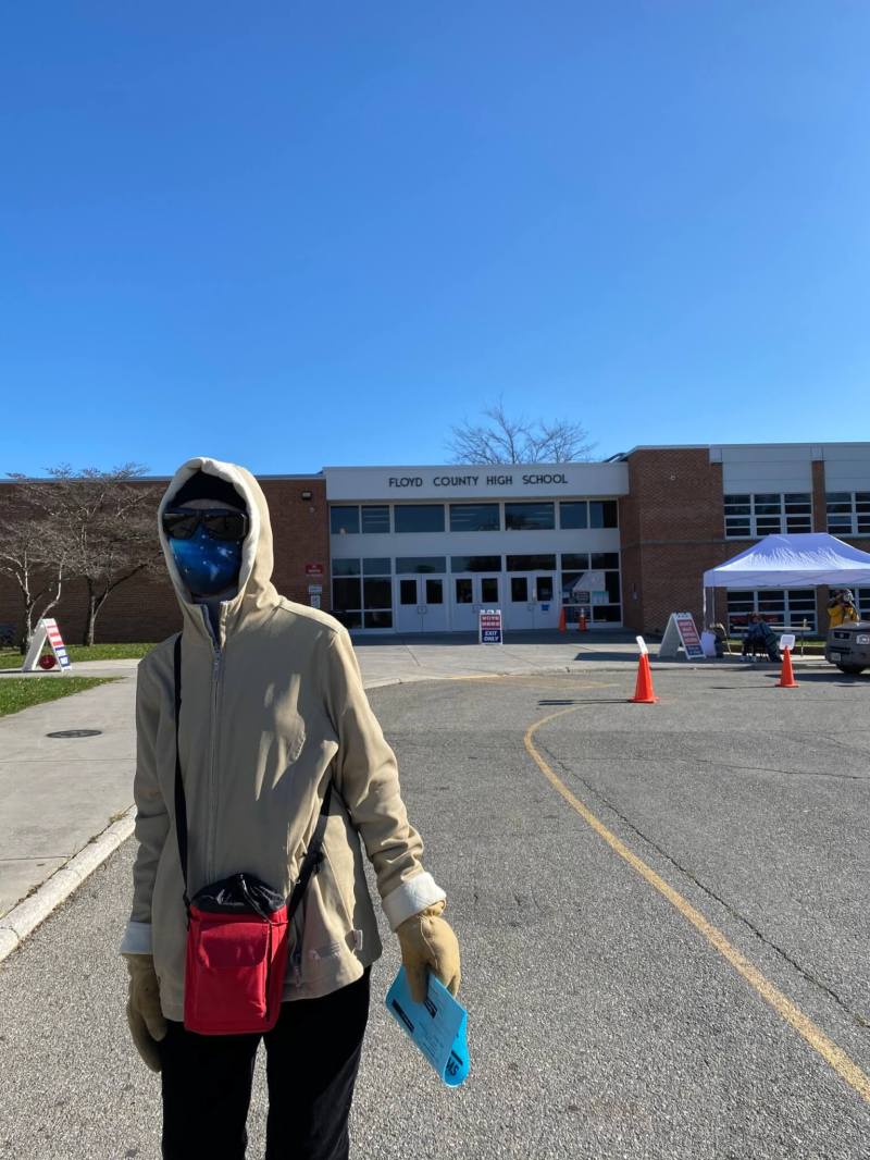 A few volunteers from the Floyd County Democratic Party are on site today to act as “greeters” and legal observers. Graham Mitchell said he was asked to look out for any form of voter intimidation, spreading of misinformation, or folks being belligerent this morning. But so far: “everything’s been going quietly,” he said, which is what he expects from the “good, kind folks” of Floyd.