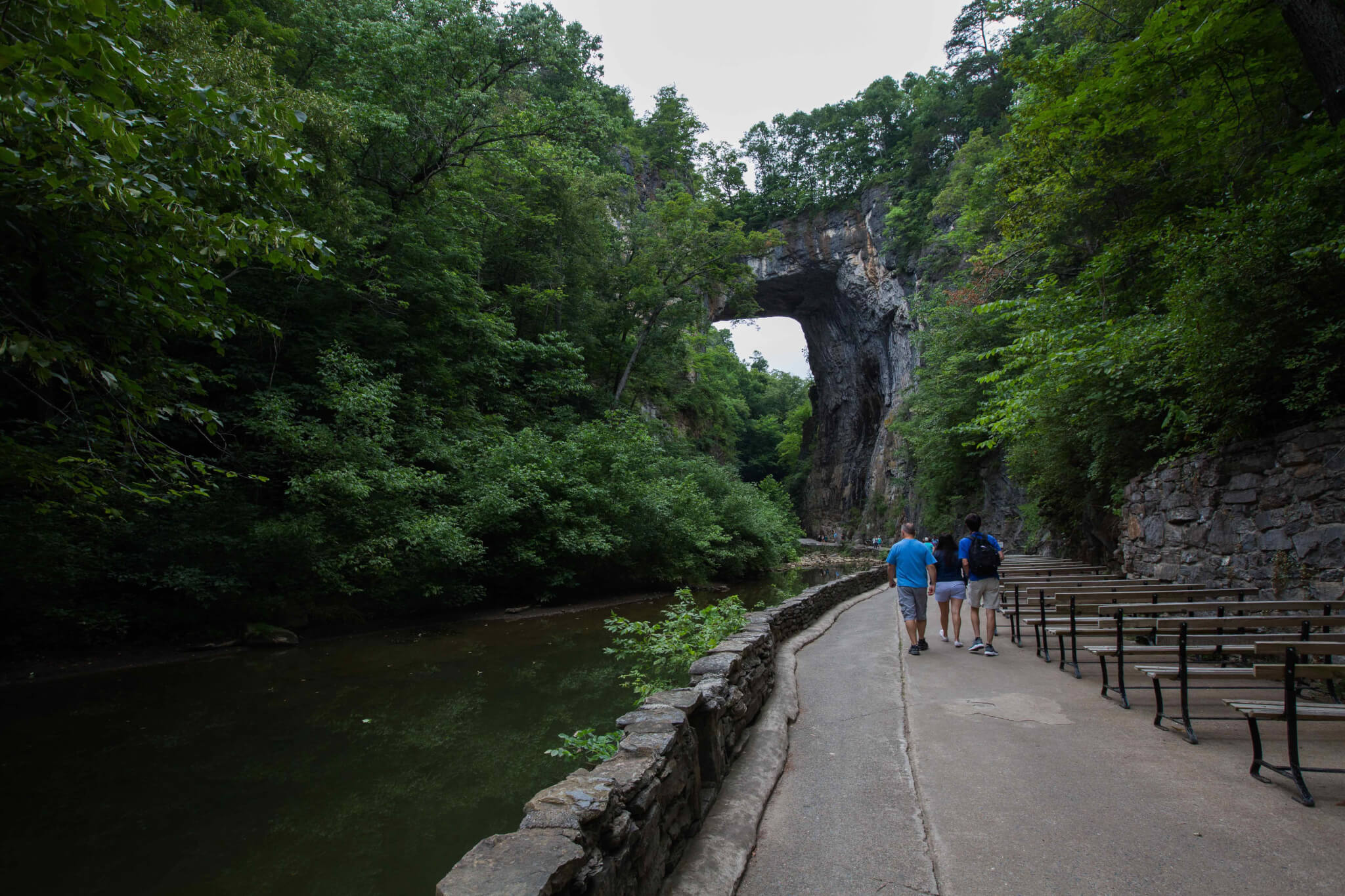 The bridge has been designated a Virginia Historic Landmark and a National Historic Landmark, and in 2016, the state officially opened the Natural Bridge State Park. A criss-crossing of hiking trails allows visitors to walk underneath the bridge. Visitors can also learn more at the Monacan Indian Village, check out Lace Falls, and take a guided tour of the nearby caverns.