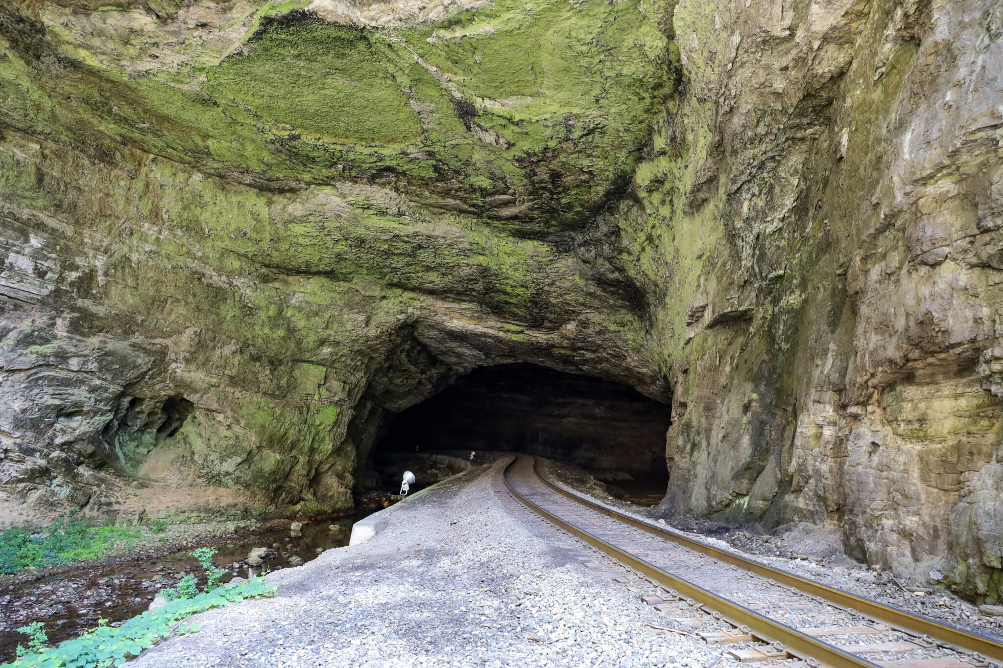 This more-than-a-century-old tourist attraction cuts through a portion of the Appalachian Mountains and is so wide that it was once used as a railway tunnel, according to Atlas Obscura.
