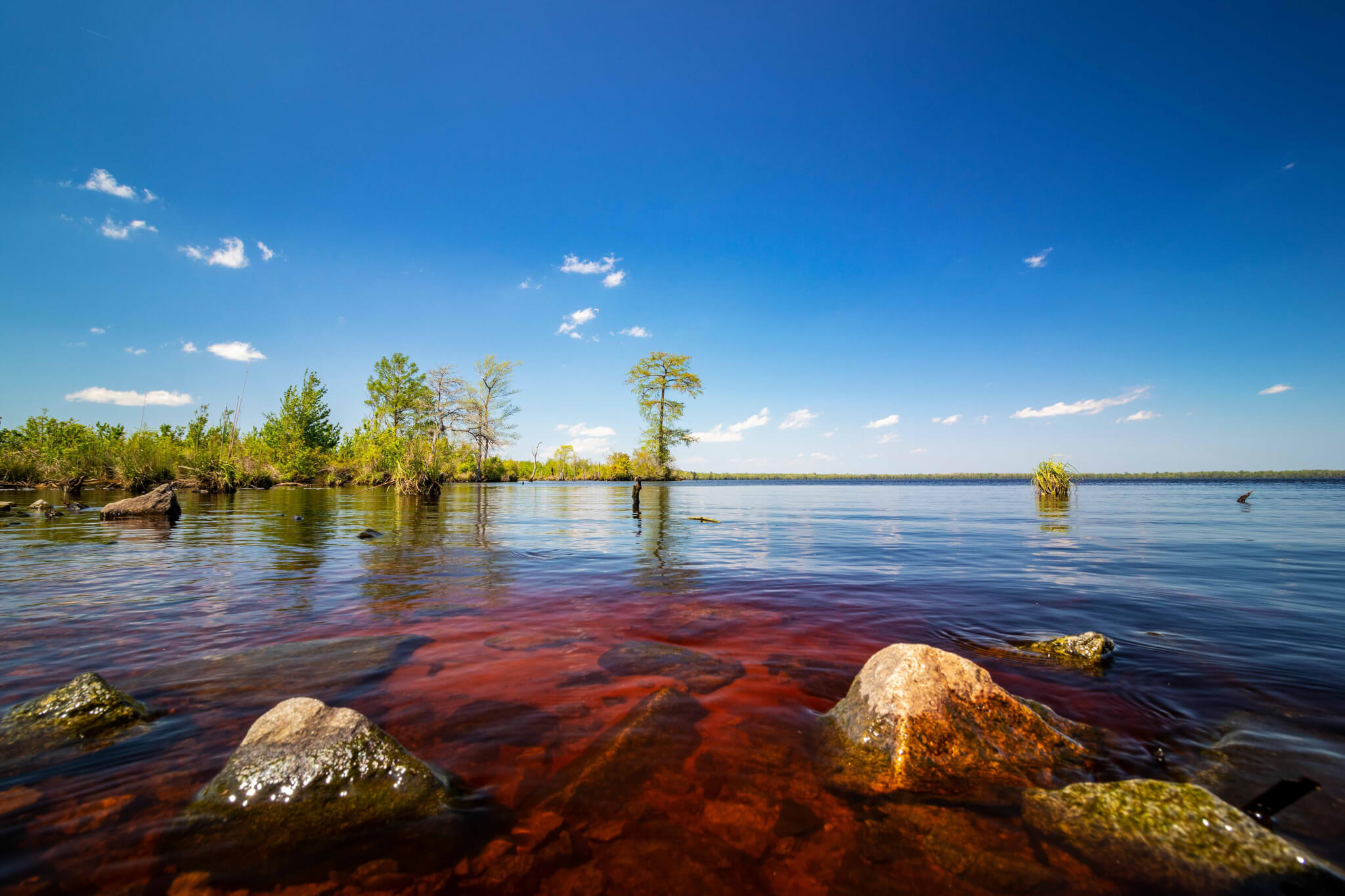 View of Virginia’s Lake Drummond on a Sunny Day. Image via Shutterstock