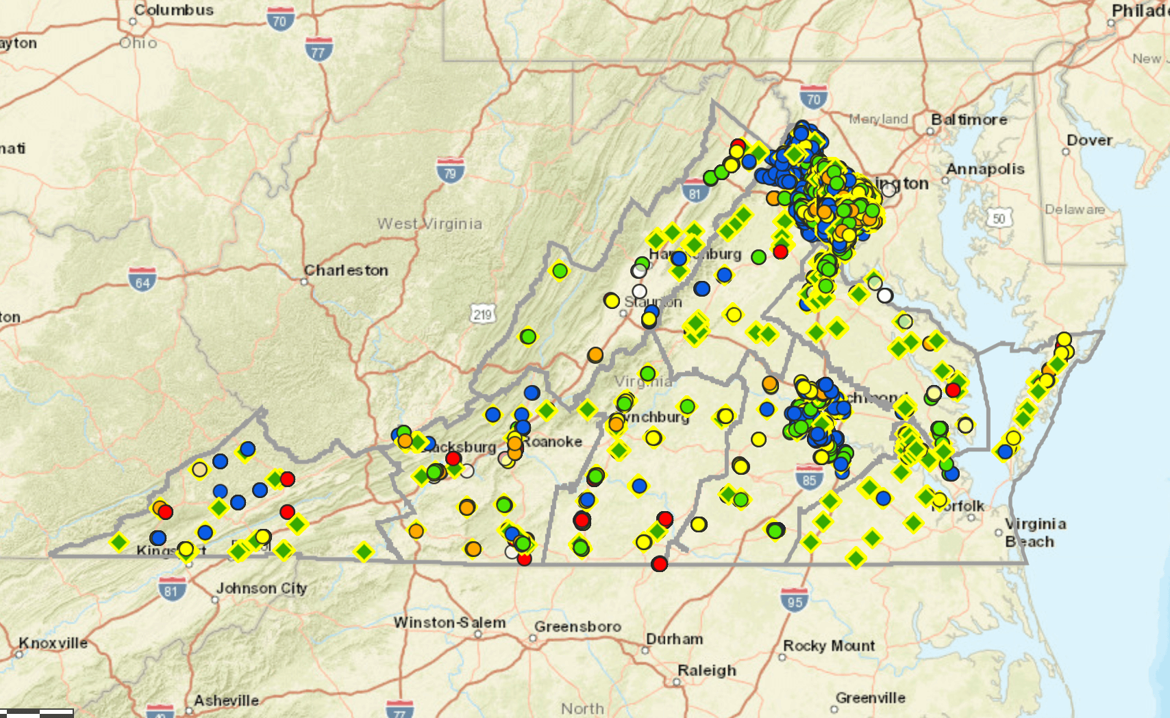 However, the map has serious holes where VDOT hasn’t gathered data. Those holes include the entirety of the cities of Richmond, Newport News, and Norfolk.