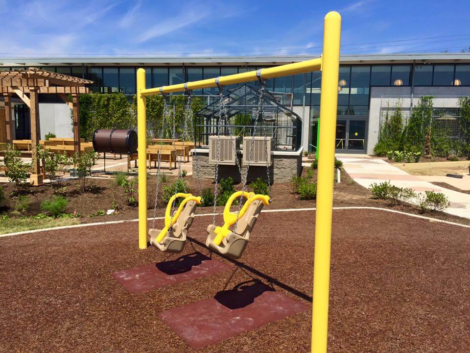 Park365 features structures designed specifically for wheelchair accessibility, accessible fitness equipment, and charging stations for electric wheelchairs.