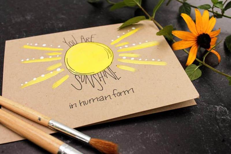 She and her husband never print cards. Each one has its own original painting and lettering, sending a positive message.