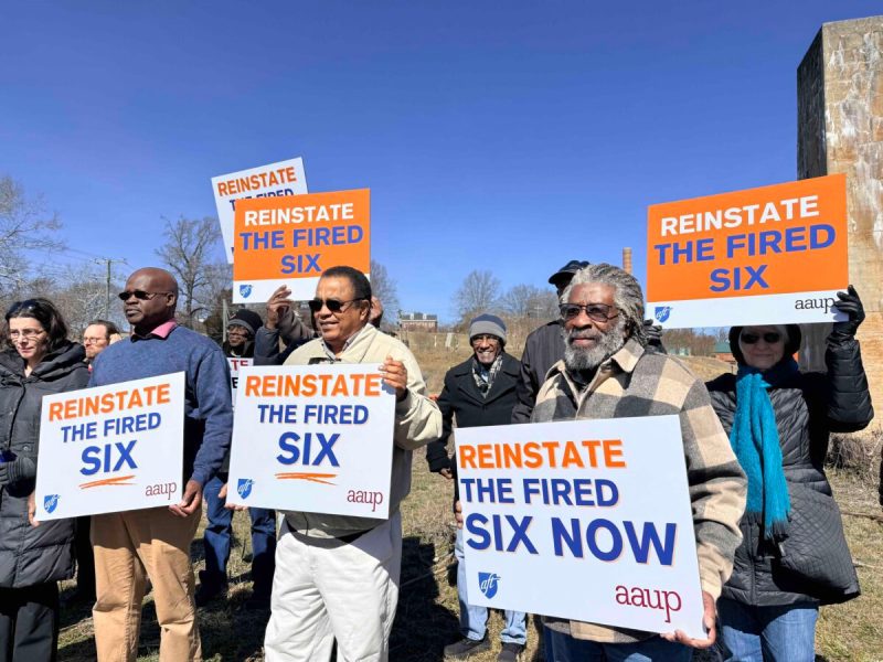 Six fired faculty members and their supporters rallied on February 24 to get their jobs back at Virginia State University. (Kelly Benjamin/AAUP)