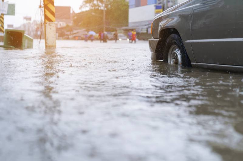 Although the precipitation tapered off, water levels in some spots weren’t expected to recede until later Friday.