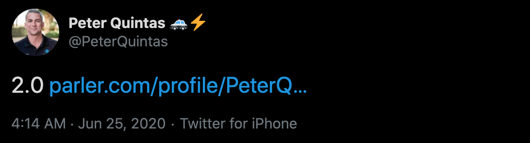 Soma’s founder and CEO, Peter Quintas, linked to his account on Parlor in a Twitter post last June.
