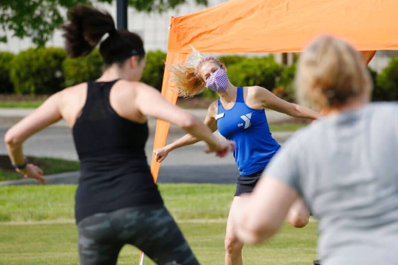 Stacey Zebrowski, a Zumba instructor at a YMCA in Henrico County, led morning classes on a soccer field. She wore a mask and class participants kept far apart from each other. While far different from her normal classes, Zebrowski said it felt “fantastic” to be back teaching again.