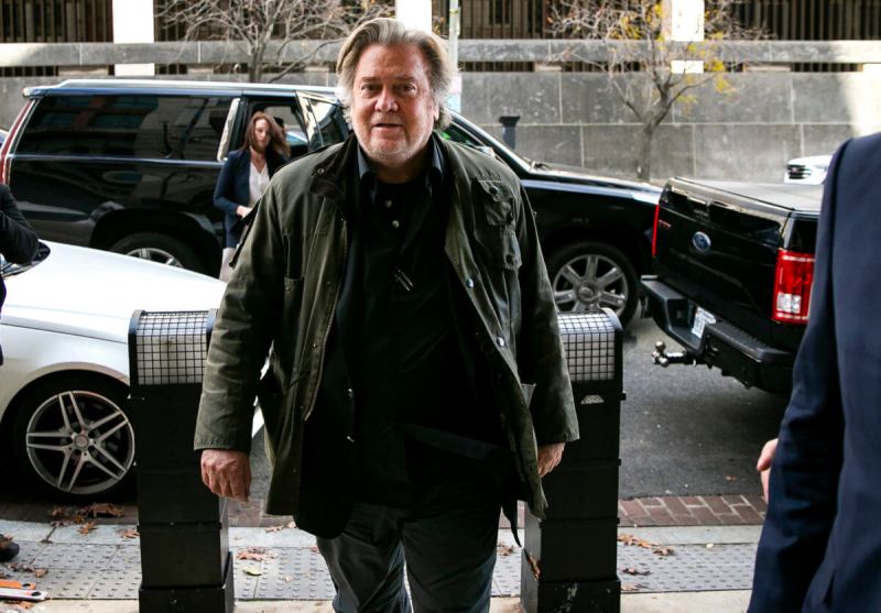 FILE – In this Nov. 8, 2019 file photo, former White House strategist Steve Bannon arrives to testify at the trial of Roger Stone, at federal court in Washington. Bannon was arrested Thursday, Aug. 20, 2020, on charges that he and three others ripped off donors to an online fundraising scheme “We Build The Wall.” The charges were contained in an indictment unsealed in Manhattan federal court. (AP Photo/Al Drago, File)