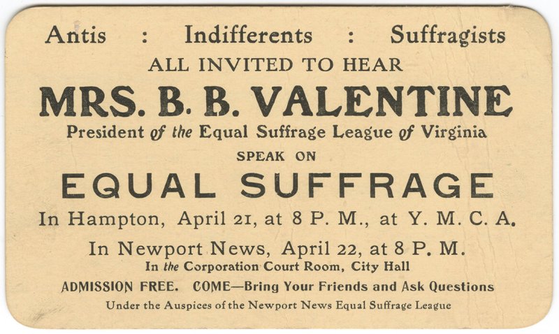 From the state capitol to the far reaches of the Virginia-North Carolina line, females made their voices known. In Chatham, women organized the Pittsylvania County Equal Suffrage League with 50 members in 1916.