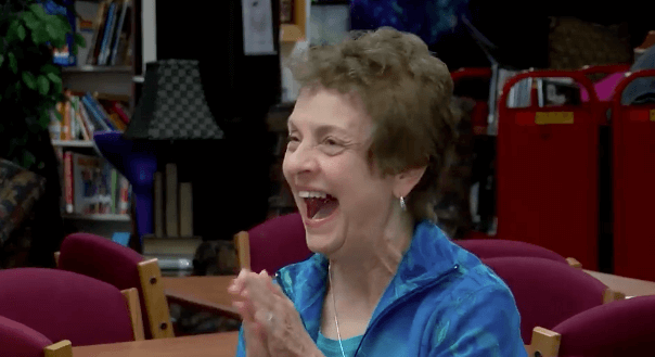 Teachers and administrators set up the library to present the gifts to Propst. Upon receiving the presents, Propst grinned ear to ear.