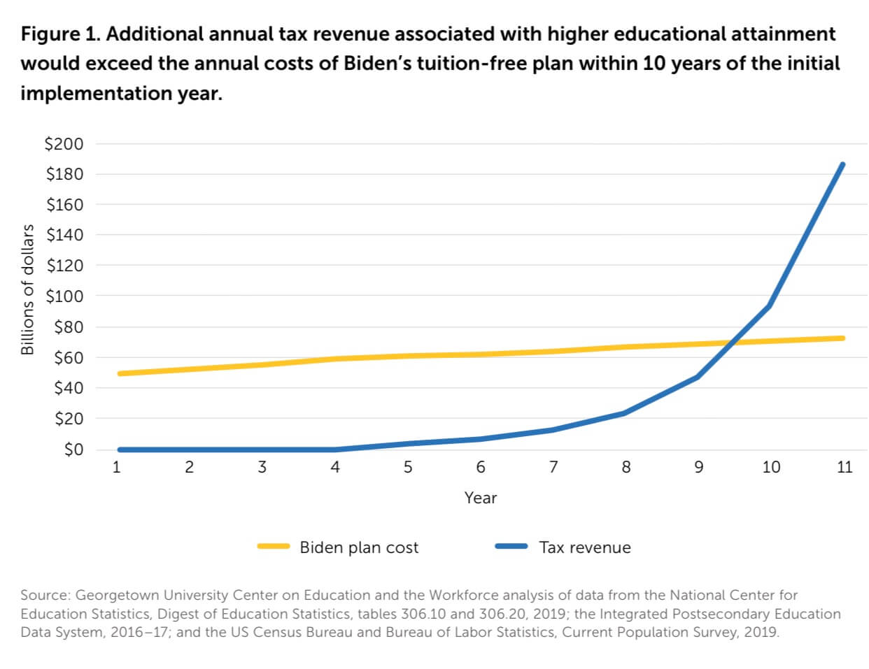 WASHINGTON-Joe Biden’s Free College proposal pays for itself within a decade. That’s what professors from Georgetown University’s Center on Education and the Workforce say. Center officials released their analysis this past week, examining the plan and comparing it to multiple other free college proposals.