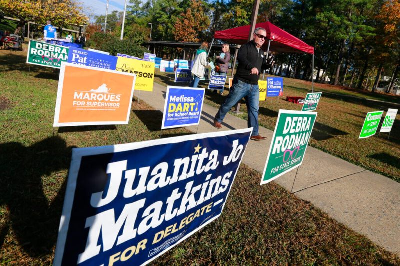 Voters walk through a sea of campaign signs at a polling station in Richmond, Va. (AP Photo/Steve Helber)